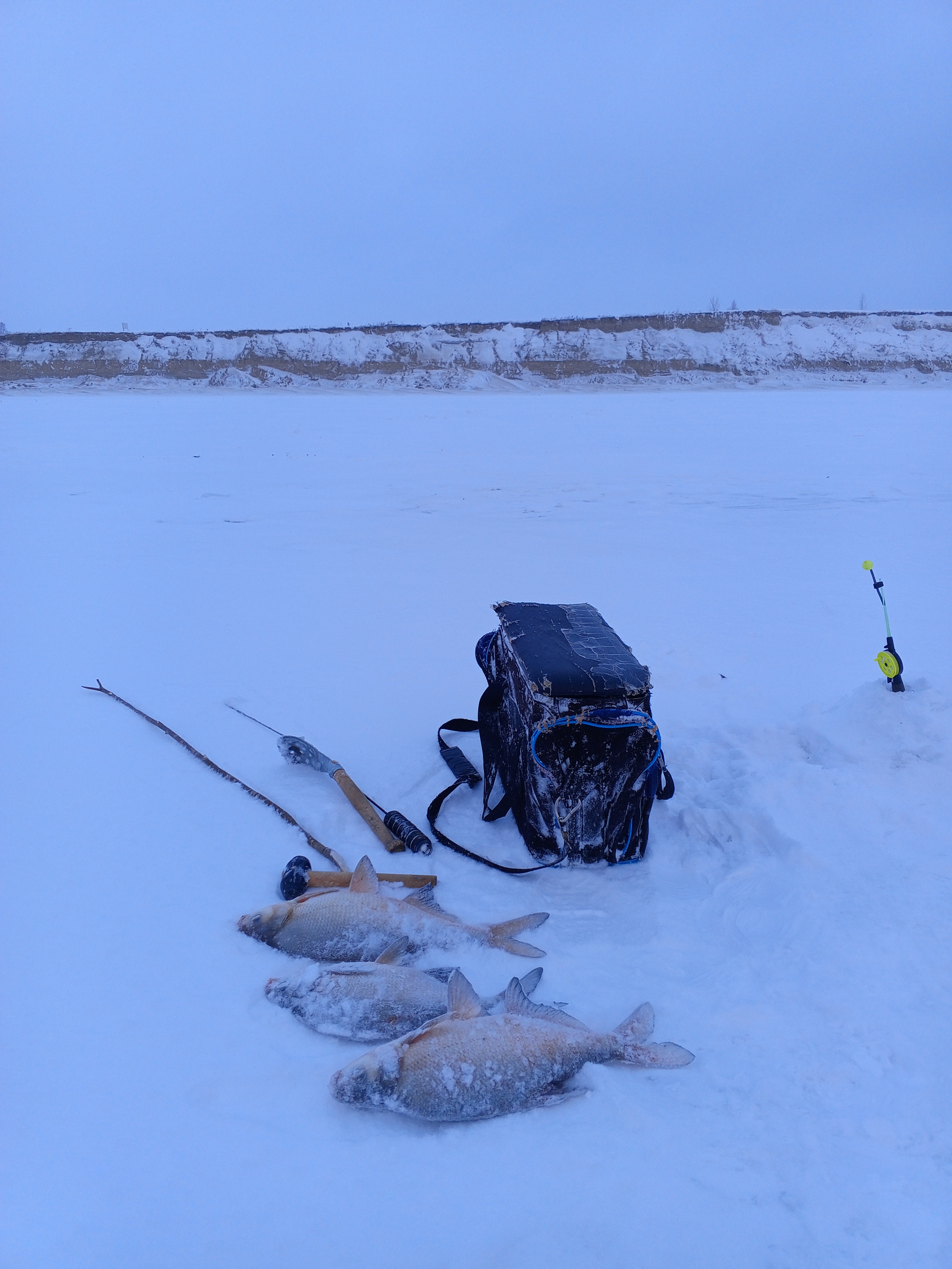 Зима нынче необычная, ледостав неправильный, клёв непредсказуемый. Решили мы встать на весенних песках. Но и про яр не забыли. Решили выставить снасти по всей ширине реки для дальнейшего понимания хода рыбы и последующей перестановки.