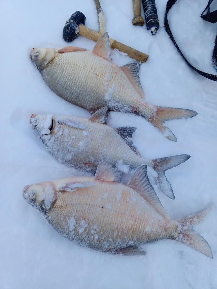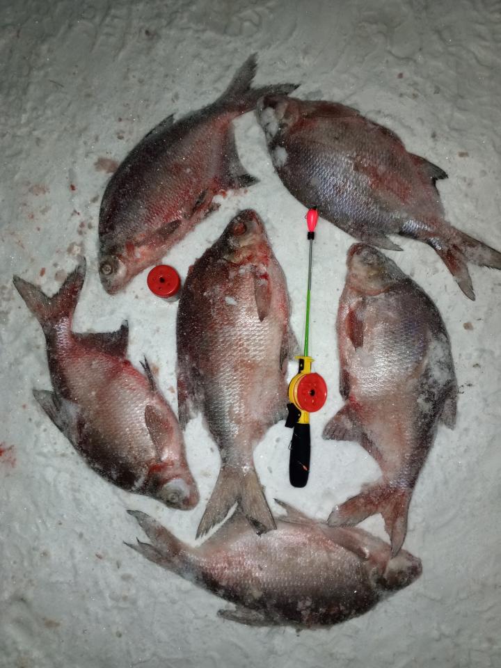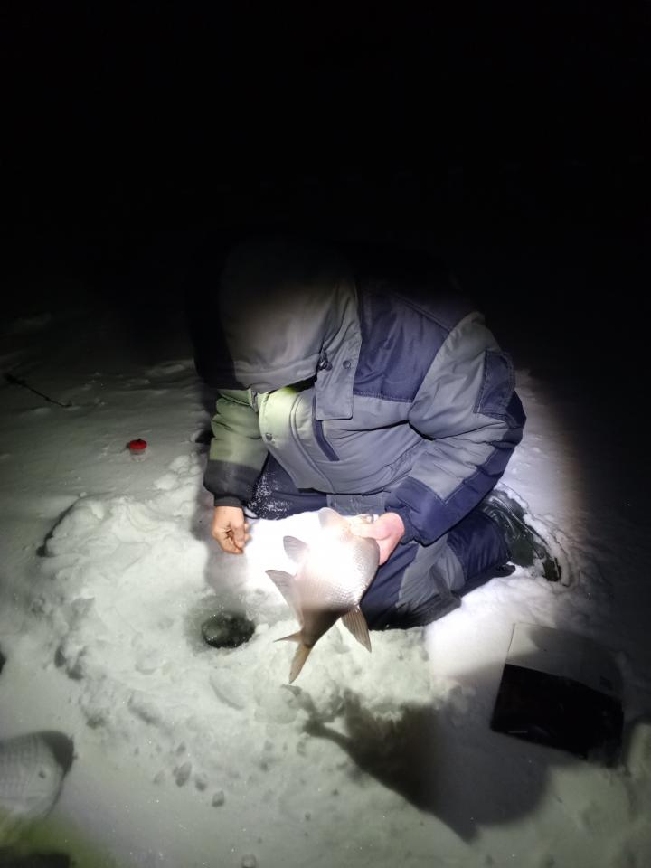 Синоптики снова ошиблись. Вместо слабого ветра в 1-4 м. с. дуло дай бог. Палатка стояла крепко, но шум, хлопки материала и шуршашего по стенкам и крыше снега, прибиваемого воздушными потоками, спать комфортно не давали. Сон на рыбалке и так всегда в полглаза, а в ветер у меня ещё появляется повышенная тревожность. В общем выспаться не удалось. За вечер и ночь мы сделали с отцом несколько проверок и закормов. Удалось поймать по 5 лещей и по одному язю. Мы удивились, что всё так одинаково получилось по улову. В принципе, количество рыбы не так уж важно, и результат рыбалки уже есть. Уже не стыдно вернуться домой - есть и рыба, и фото, и видео, и положительные эмоции. Но древние охотничьи инстинкты заставляют искать добычу. Мы бурим новые лунки, переставляем снасти, меняем прикормку и видим, что поклёвки случаются чаще. Сравнив локацию дневного и ночного клёва делаем очередную коррекцию расстановки удочек.