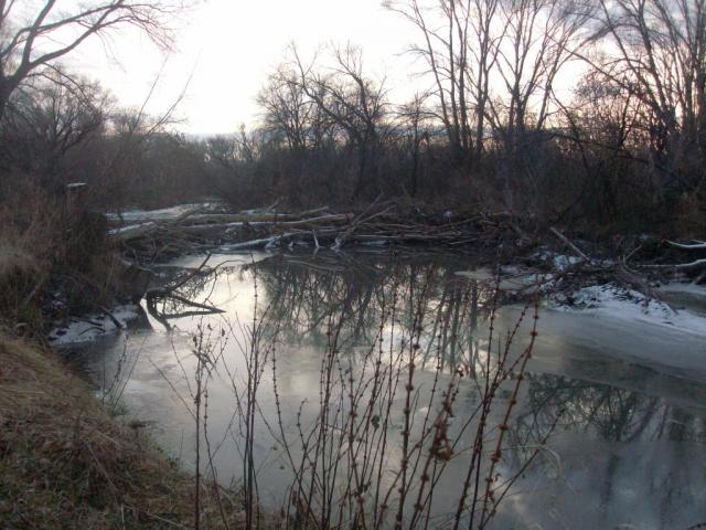 Опустив прямо с берега мормыху,тут же извлек тюлину,отправил назад и пошел дальше.Хотелось узнать что с хищником,есть ли перспективы.Еще из далека заметил две лунки у берега под тополиной,залез и давай макать блесна,балансиры,чертей,мормыхи.Ни кто не клюнул...Может рыба была не в настроении,но мне все равно,свежий воздух и тишина-это то чего так не хватало.Сижу себе макаю в лунку,вдруг слышу-апчи,из под тополины!Аж вздрогнул.Спрашиваю:Ты кто?Как он даст хвостищем!Я чуть с тополины не улетел!Бобер чертяка,нюх что ли потерял.Короче так прошла разведка средненько.