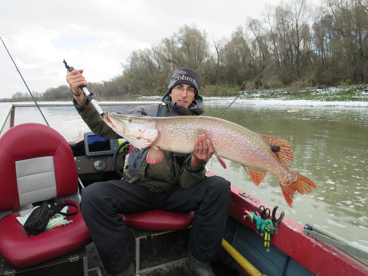 Следующая постановка, свал протоки в русло, поклёвка, сначала тяжесть, а потом слабина...Сход говорю... но не тут то было, рыба просто двинула в сторону лодки и остановилась, а я продолжил дальше её вываживать...после недолгой борьбы, со второго раза заводим красотулю в подсак.
