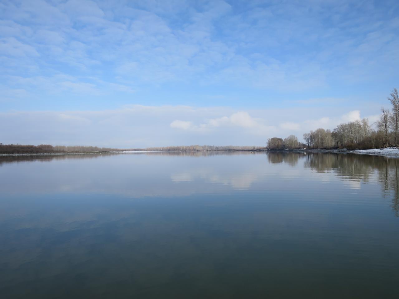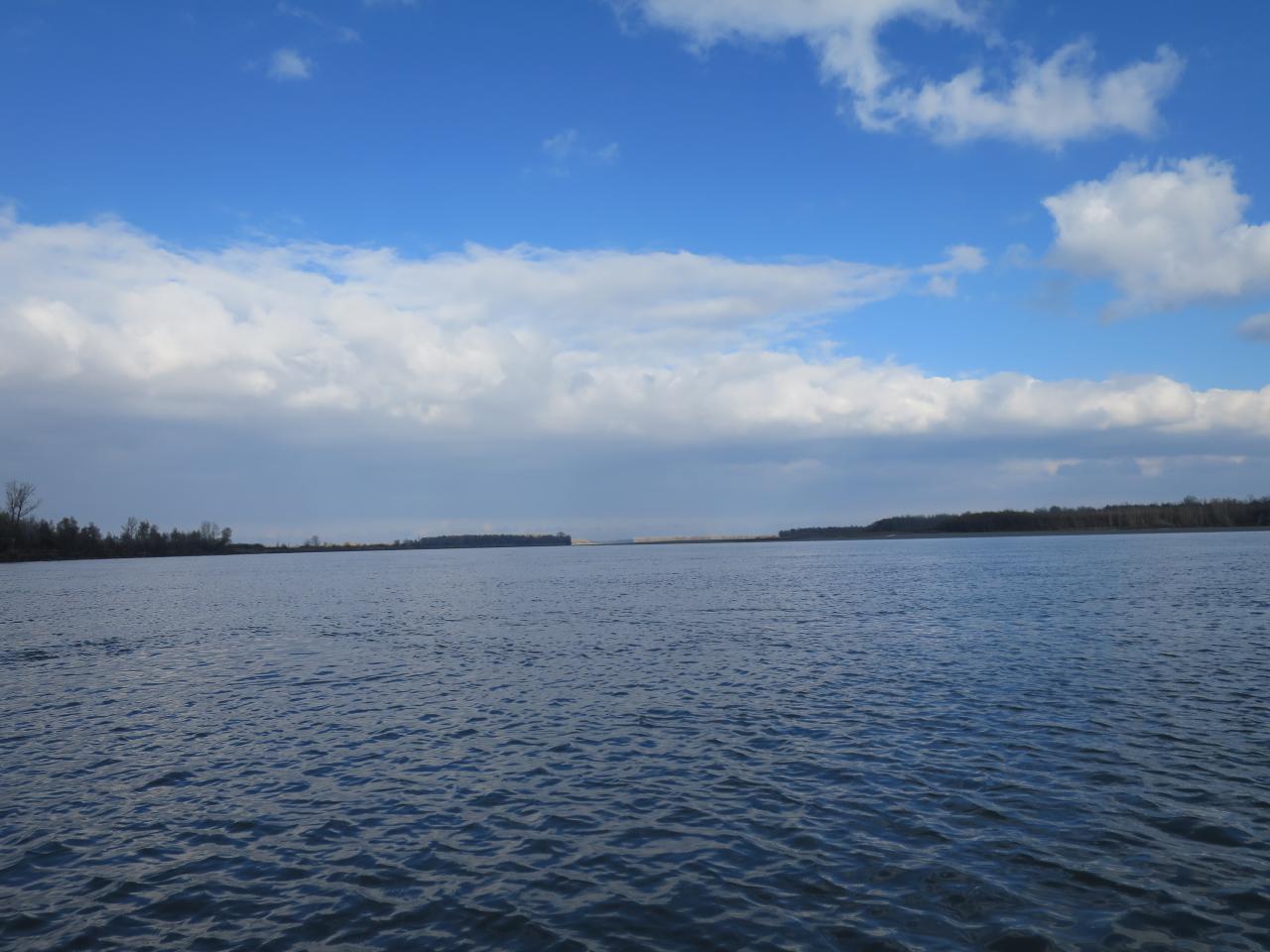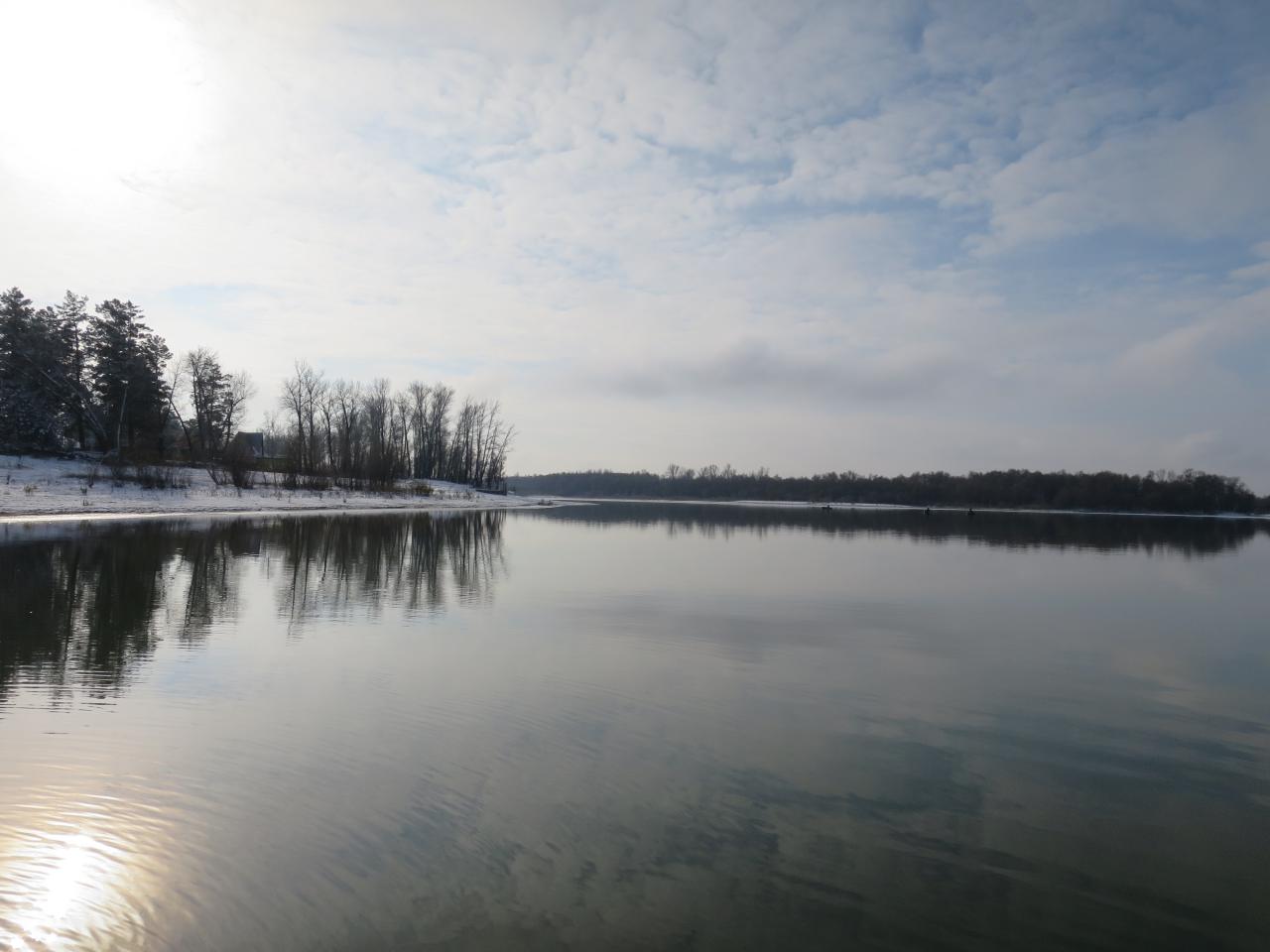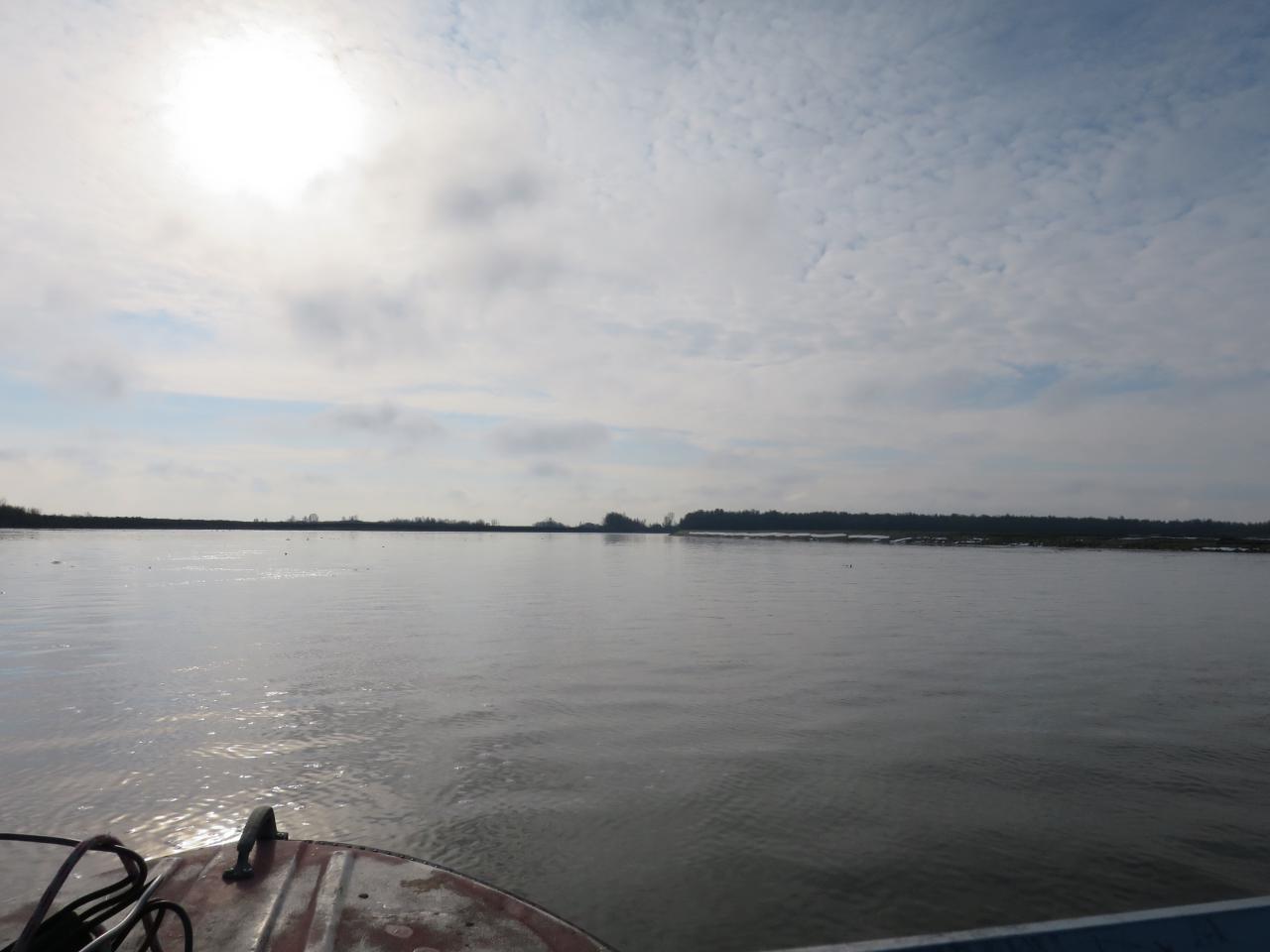 Не смог не воспользоваться моментом съездить на реку в такую хорошую погоду, поехал с товарищем - Андреем. По приезду на берег наблюдаем такую картину - лёд в затишках встал, печально, но нас разве этим остановишь? Нашли открытую воду, спустили лодку, прогрели мотор и вперед.