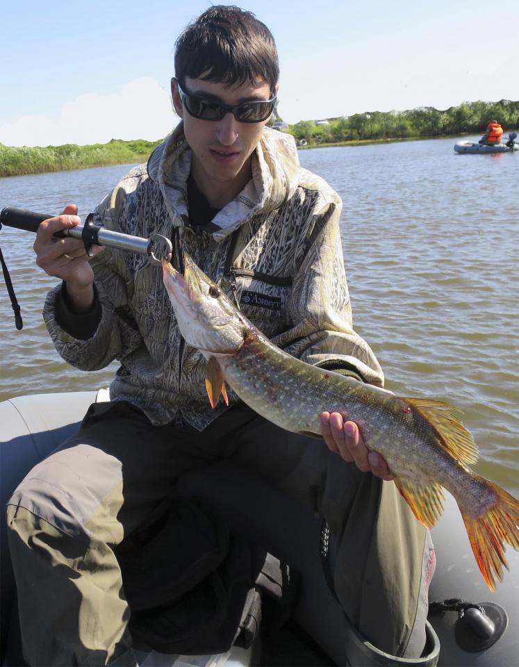 )отдаю тиру,ставлю классику басс ассасин в самом ловчем цвете, сам ловлю на кастинг, поклёвки начались сразу(удачно встали,рядом с границей стрелки) ловлю некрупную на савамуру 4" под форельку, показываю новичку как заводить в подсак, в этот момент новичек всекает закилошную щуку недалеко от лодки, принимаю две рыбы в подсак