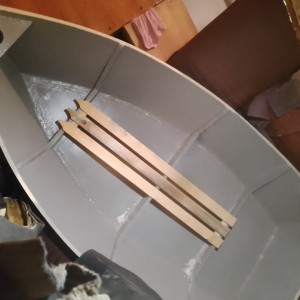 Плавсредство указанного типа. Изготовлено по технологии "сшей и склей" по обводам португальской шлюпки. Становится через кильблоки на стандартный багажник ВАЗ-ГАЗ-Мосвкич. Водоизмещение около 420 кг. Под весла или минимотор. Вопросы лучше по телефону.