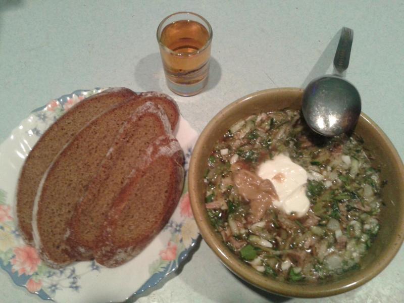 А у нас сегодня на ужин вот.... В процессе употребления данного блюда лето и впрямь показалось ближе! ))) Всем доброго вечера и приятного аппетита! ЗЫ квас, горчица домашнего приготовления, смЯтана деревенская!