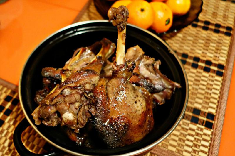 Не стал готовить целого, поделил порционно... Ингредиенты: один гусь; 6 кисло-сладких крупных яблока; лимон 1 штука; столовая ложка меда; масло оливковое или подсолнечное 20 грамм; винный уксус 25 грамм; соус соевый 60 грамм; имбирный корень тертый...