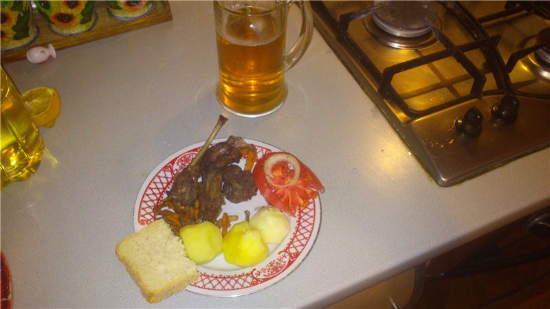 Поделюсь с вами рецептом(моим любимым),как приготовить зайца ну или кролика. Берем зайца(вчера еще бегал) режим достаточно крупно, режим лук полукольцами,морковь полосками. Затем зайца,лук и морковь выкладываем в одну миску,заливаем стаканом кр...