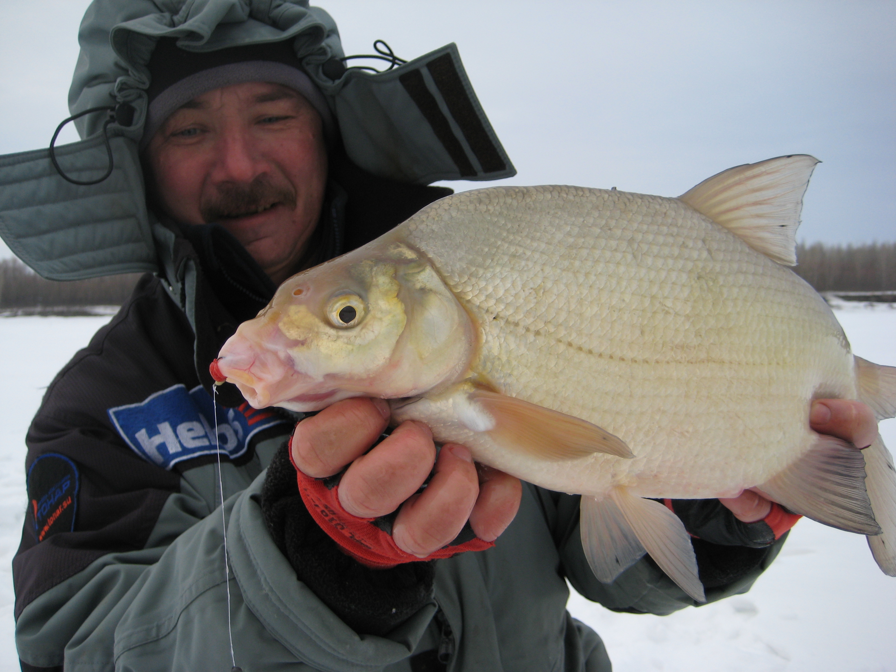 И вот первая поклёвка и лещишка на льду