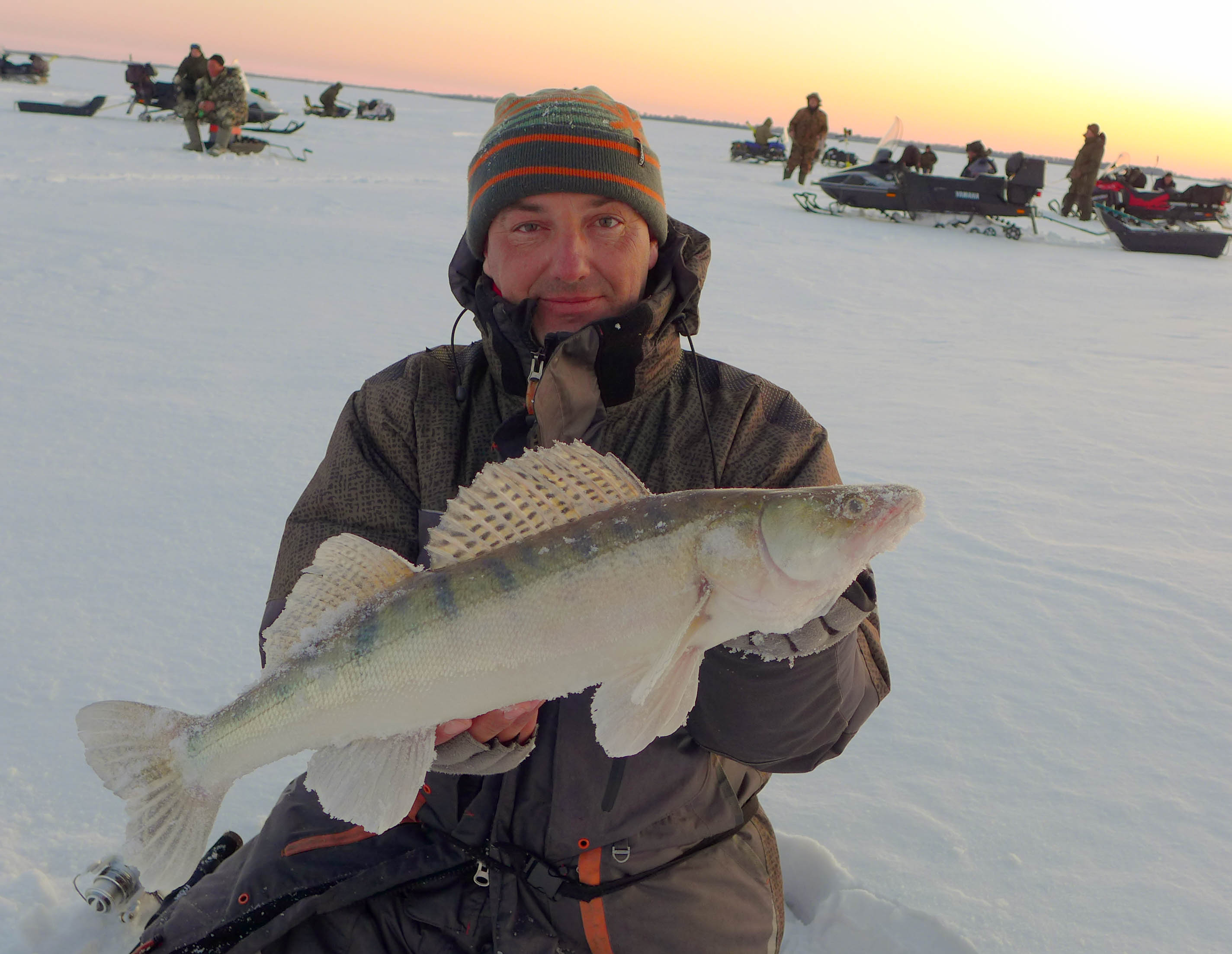Опытные, только что выдернув судака - сразу срывались с места - и переходили на новое место. Метров на 20 в ту сторону, куда они считают - что движется судак. И там, сразу ловили. Я это видел и тихо офигевал. Видимо, настолько хорошо знают повадки рыбы. Стая судака шла не останавливаясь. Куда она повернёт - предположить трудно - направление всё время менялось.