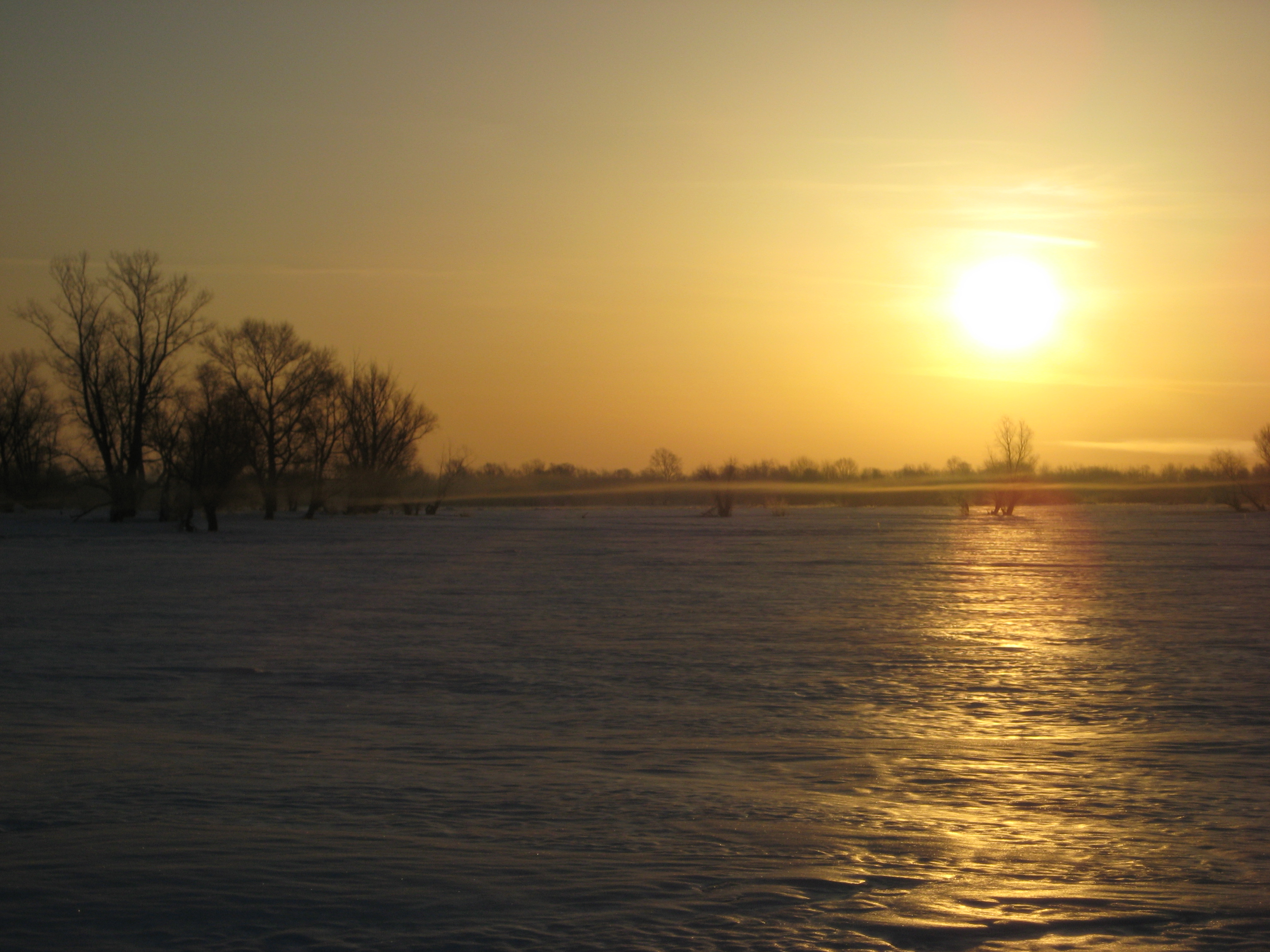 С вечера решили сходить за хищником . Утро , в городе тепло , доезжаем до места , спускаемся в пойму , а здесь морозец и местами туман.