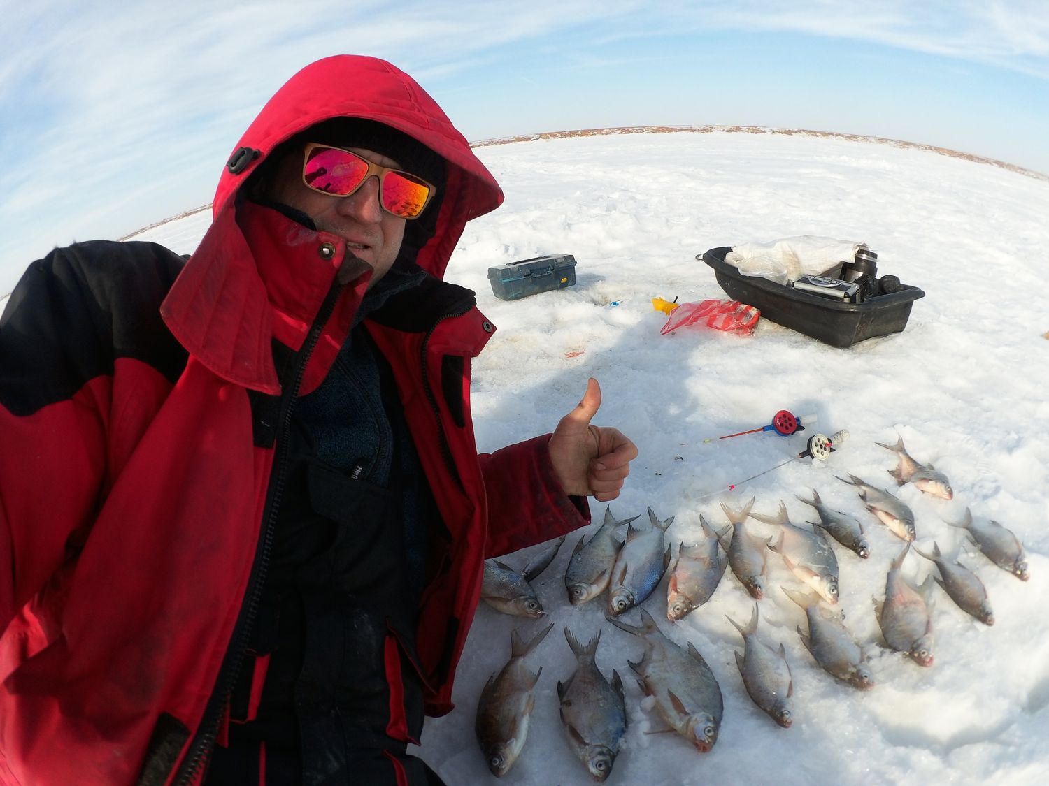 Точно! До этой рыбалки был с леской 0,08 и без багорика обрывов досадных множество. Смотрел как лещ не пролазит в лунку, смотрел в глаза судаку(. На этой рыбалке трофеев небыло. Зато подлещик вкусный в жареном виде, крупного лучше вялить-коптить. Всё ещё впереди!