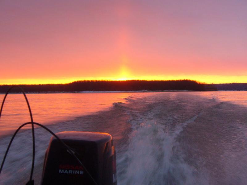 Ночная температура совсем немного подморозила землю, но этого было достаточно чтобы без приключений добраться до берега. Уже совсем светло. Ветер умеренный, температура комфортная. Вода мутная. На берегу уже многолюдно. В стороне голодные быстренько снимаю сети. Расчехляемся, здороваемся со знакомыми.