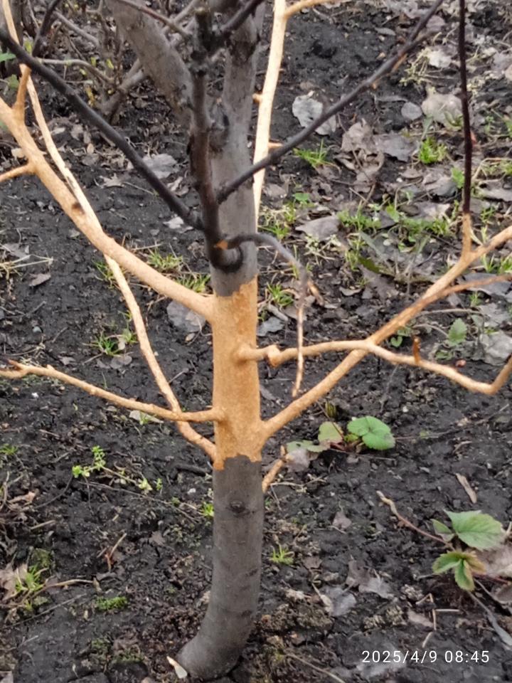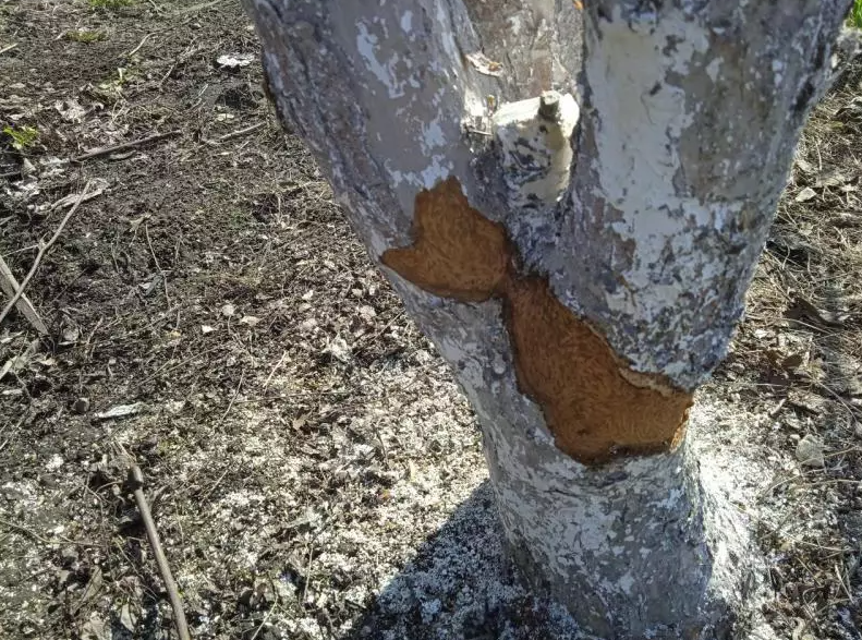 У меня соседи стволы чем-то белым покрасили от мышей...