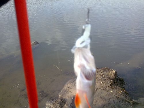 3. Dropshot - вот эта снасть себя оправдала. Привязываешь флюрик узлом "морковка" к плетенке, узлом "паломар" поставил офсетник с силиконом от ЛакДжона и грузило-палочка 10,5 гр. По 1-3 поклевки на обычном волочении с паузами. В результате - выловленый окунь и один щучий срез оснастки.