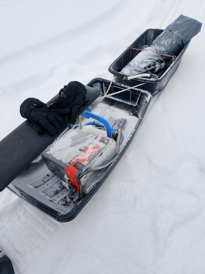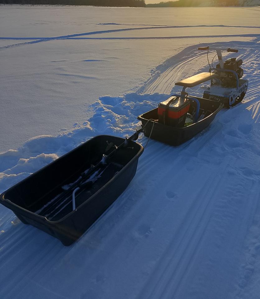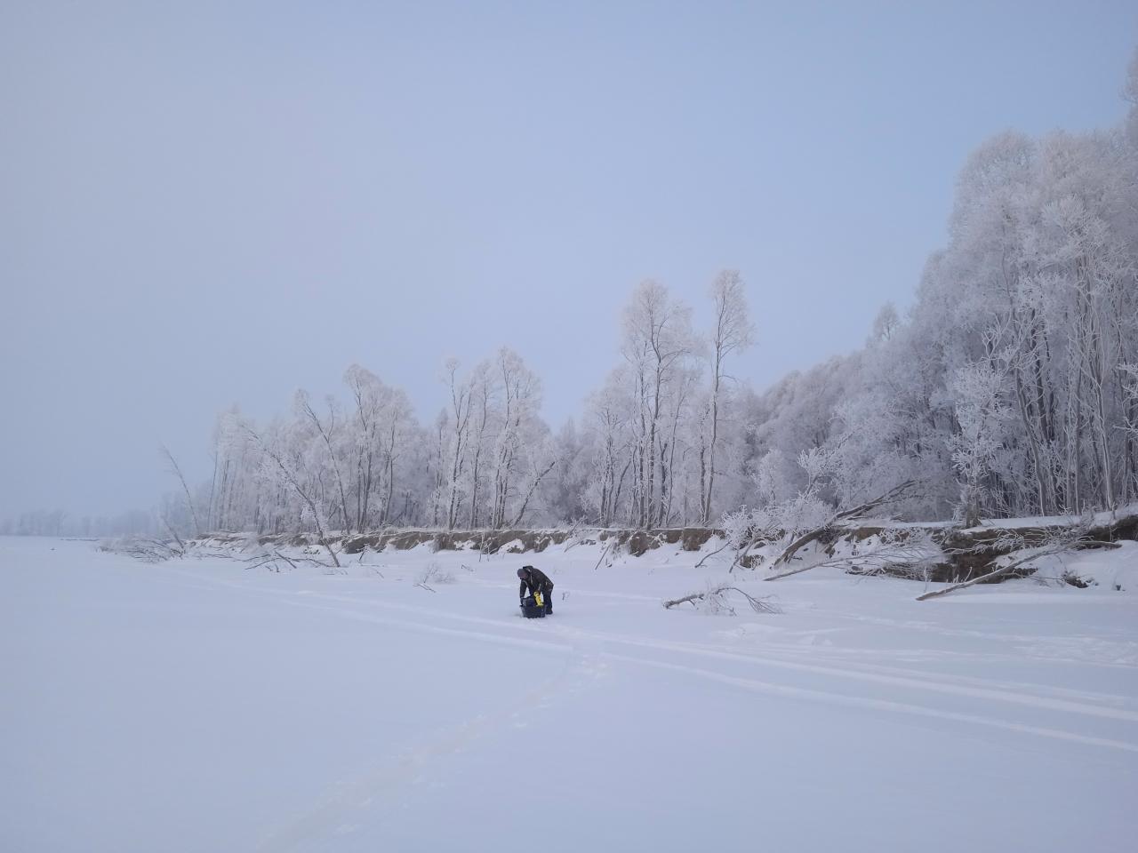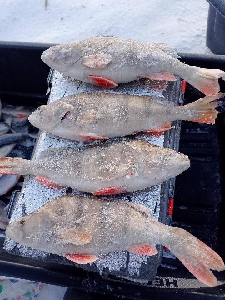 На рассвете минус тридцать два с лёгким северо восточным хиусом. Сматывал лески в рукавицах, скидывал в санки, чтобы разобрать как следует в хате. Удивительно, но рыбка присутствовала. Семь штук, из них один подъязок.