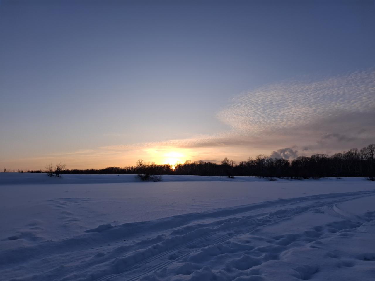 В субботу сбегал на лыжах от деревни. Протопить печку, почитать книжку под уютное потрескивание дров. По дороге поговорил с местными, говорят, не шевелится лещ. Да и густой куржак..Позвонил Митьке, у них тоже не ахти прошедшей ночью. Словом, была мысль провести время без рыбалки, в формате лыжного похода. Но напился чаю, отлежался и в сумерках вышел на лёд.