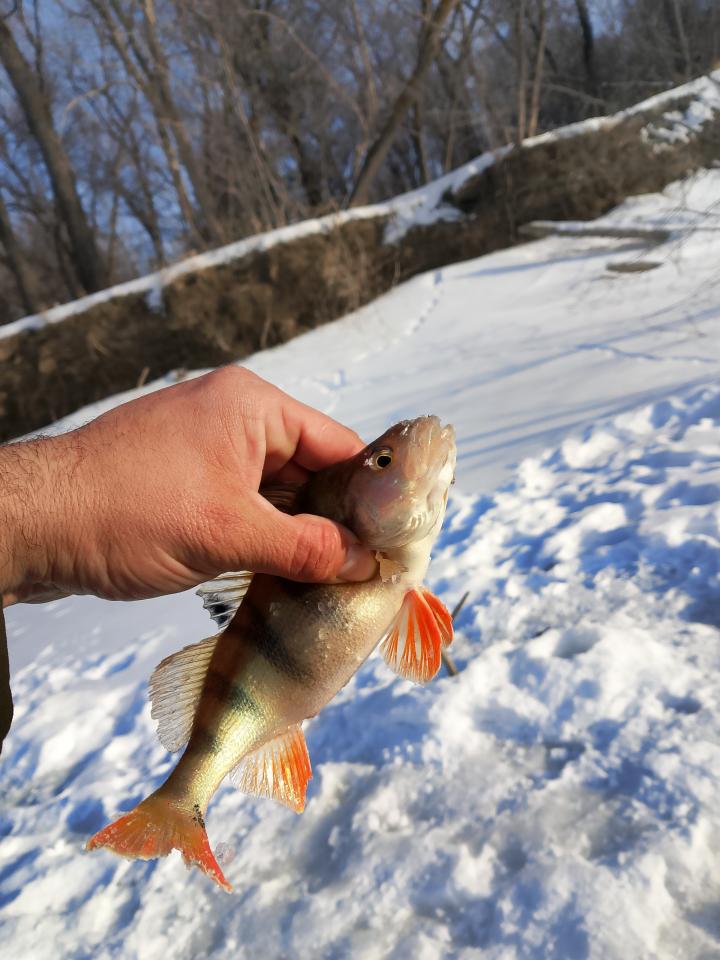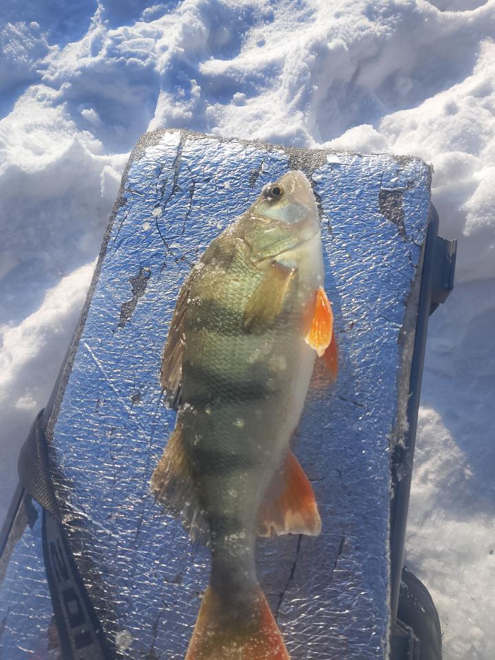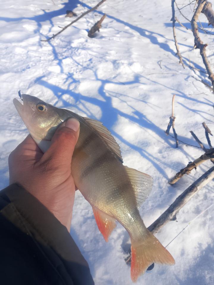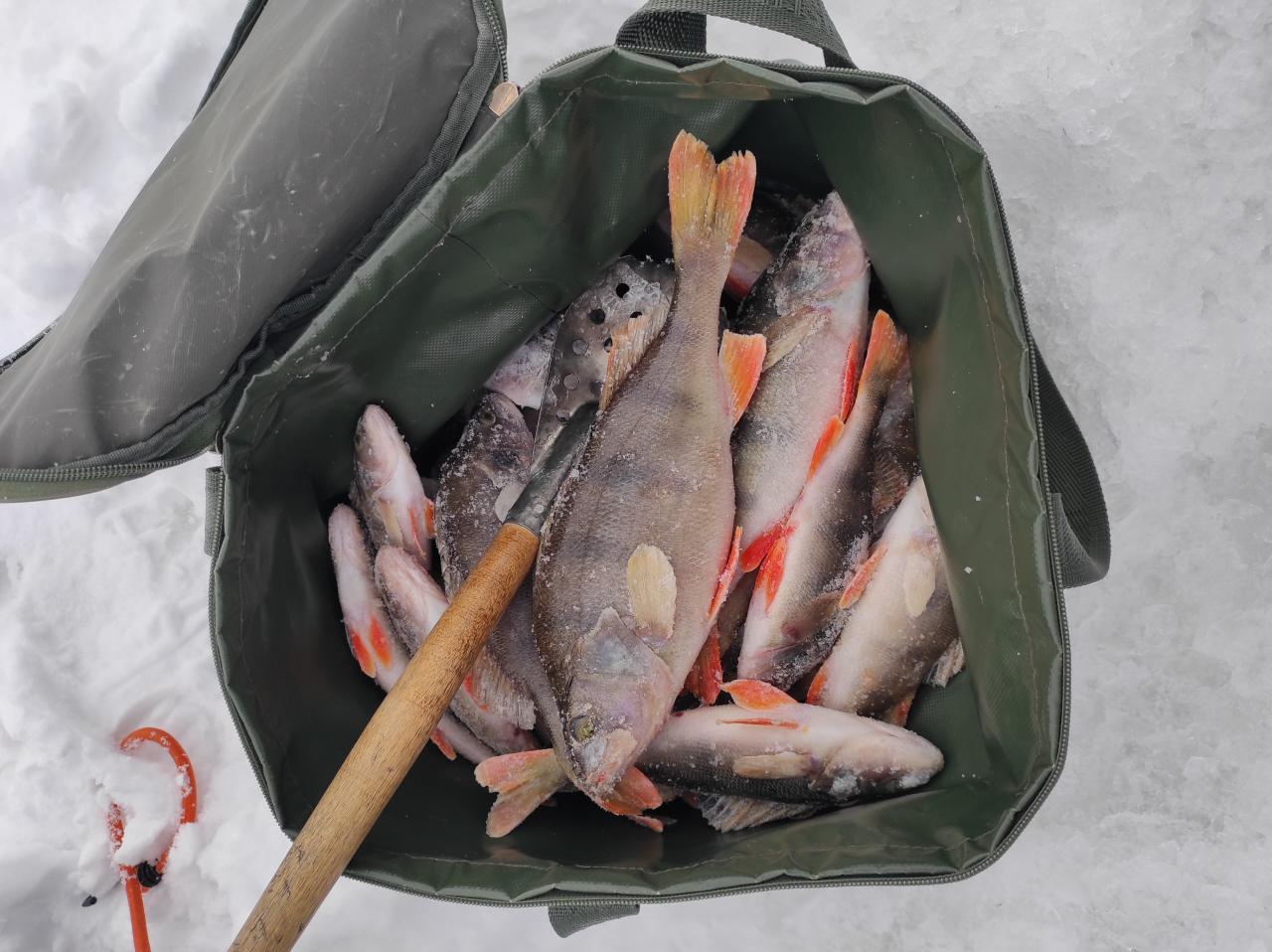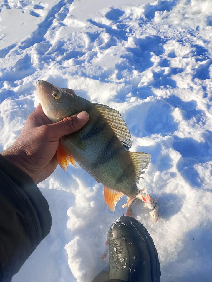 Перед обедом клев стих, добавил несколько лунок и в одной удача, полосатые кабаны!