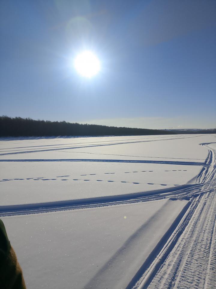 К обеду потеплело, 22 на термометре. Лыжи в такую погоду, да по вчерашней колее, да с ветерком в спину!! До машины два часа
