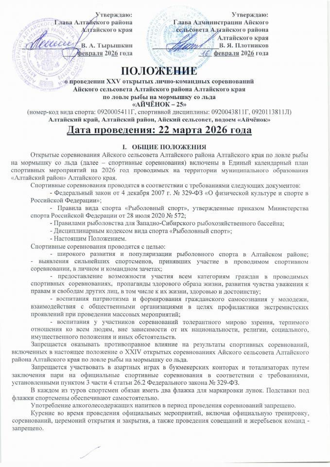 XXV открытые лично-командные соревнования Айского сельсовета Алтайского района Алтайского края по ловле рыбы на мормышку со льда "Айчёнок-25"